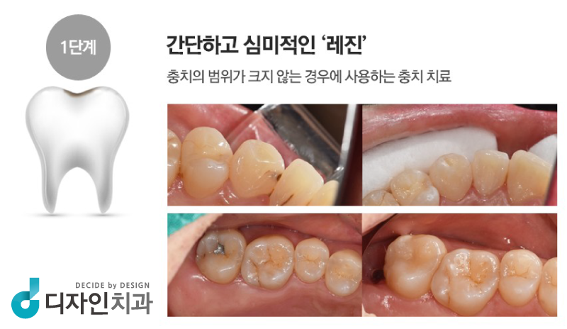 레진치료는 치아의 충치가 약간 있는 부분과 치아 옆면에 구멍이 난 부분을 간단히 제거한 후 레진재료로 직접 수복하는 기본적인 충치치료 방법으로 하루면 충분합니다. ~레진처리의 장점은 그 부분만 제거하고 레진재를 직접 수리하여 하루만에 처리가 완료된다는 점~과도한 처리가 아닌 정직한 처리? ?